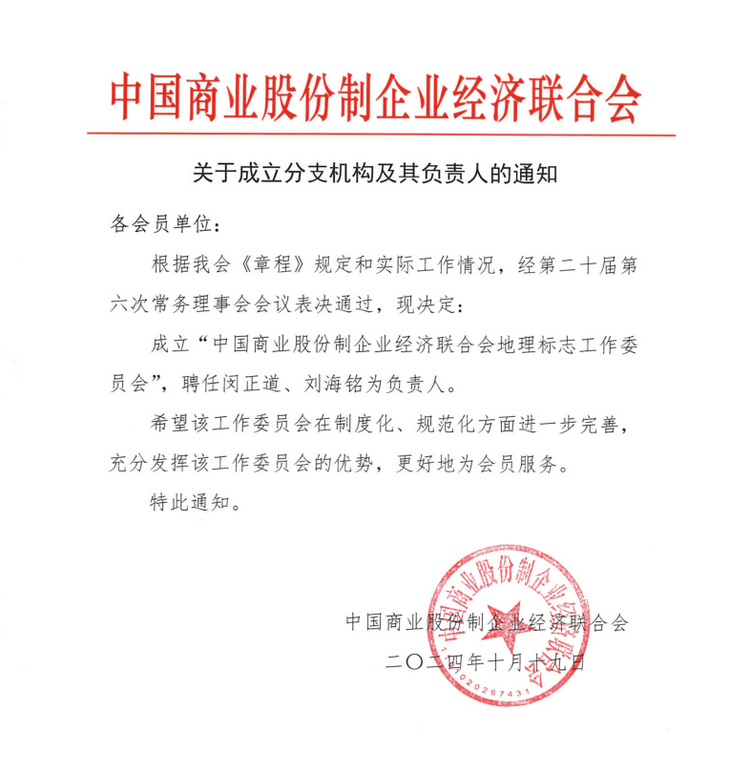 2024年10月19日至20日,中国商业股份制企业经济联合会地理标志工作委员会(简称中国经联会地标委)成立大会、地理标志第11次工作会议、地理标志50人论坛第一届峰会、中国地理标志品牌文化节发起创建联席机制工作会议第1次联席会议、中国地理标志万里行走进北京等系列活动,在首都北京德宝饭店隆重召开。